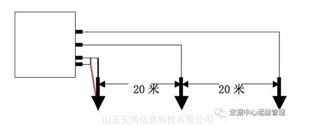 ①被测地线E,电位探测针P和电流探测针C,依次相距离20米打入地中。