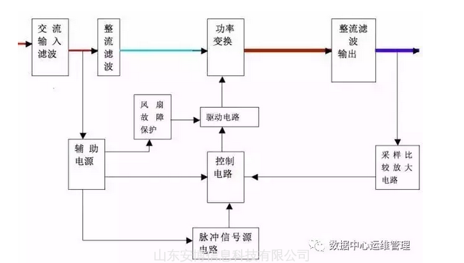 市电通过电网滤波,经整流桥的作用,把交流电变成高压直流电。在控制电路调制下,功率变换器把高压直流电变成符合设备使用的直流电。最后经滤波器作用,输出平滑的直流电 。