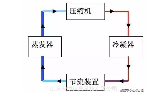 1)构造:压缩机、冷凝器、节流装置、蒸发器四大部件组成。