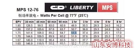 终止放电电压按照1.75V/cell确定。通常电池厂家给出的功率表为单体2V/Cell的功率,定义为watts/cell。