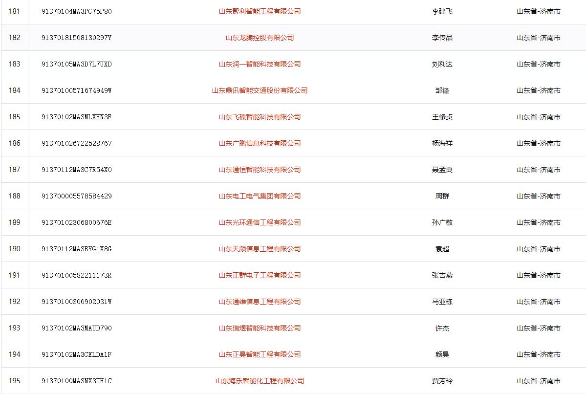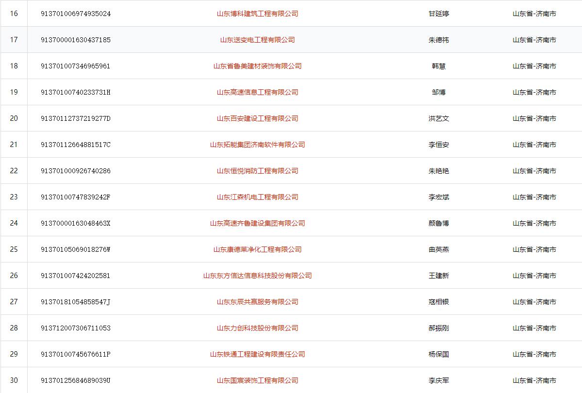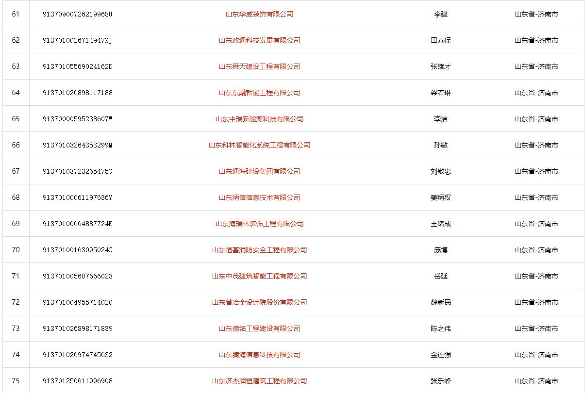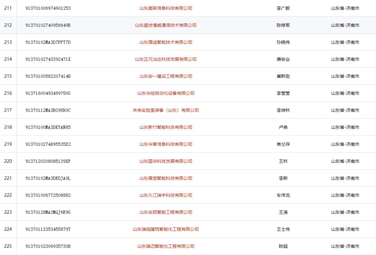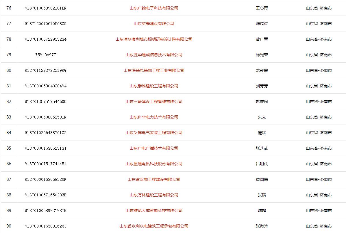 山东省济南市电子与智能化工程专业承包二级(2021)