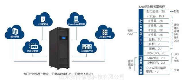 比如,某公司在生产场地没有数据中心,但需要对所有的硬件系统进行全生命周期管理,并保持灵活性和扩展性。戴尔提供了针对小型IT空间的单机柜一站式解决方案,方案包括制冷、UPS和配电、PowerEdge服务器、存储、网络、环控与管理六大模块。