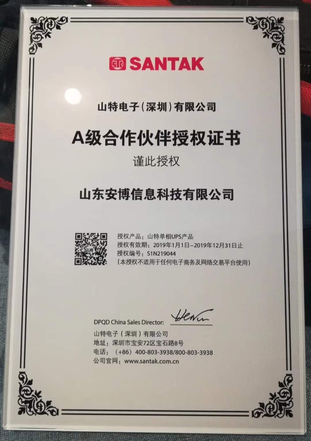 SANTAK 山特电子(深圳)有限公司 A级合作伙伴