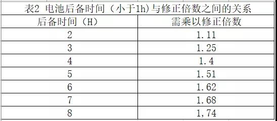 如果计算时间是一小时以上,要在按上述计算后再除以一个修正系数,见表2。