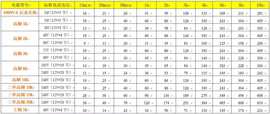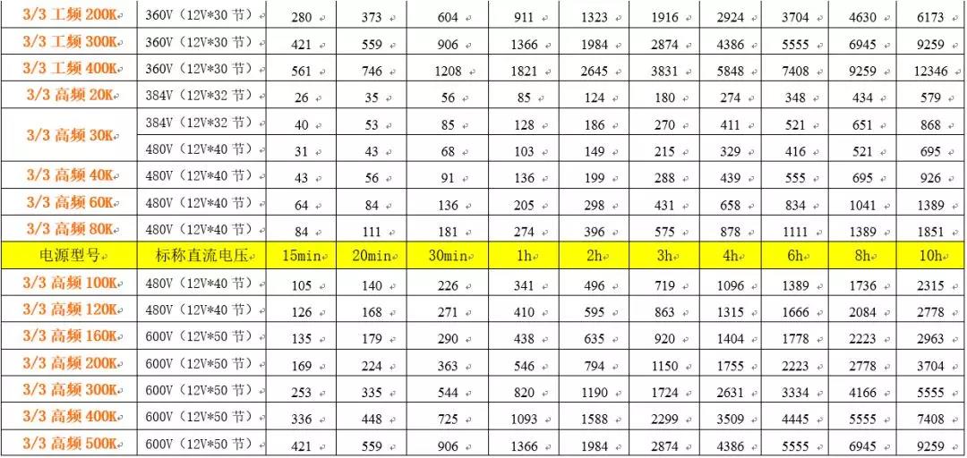 〓UPS不间断电源蓄电池计算方法及其配置表格〓
