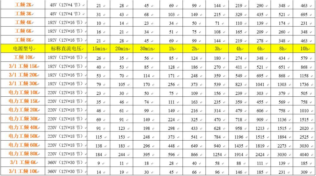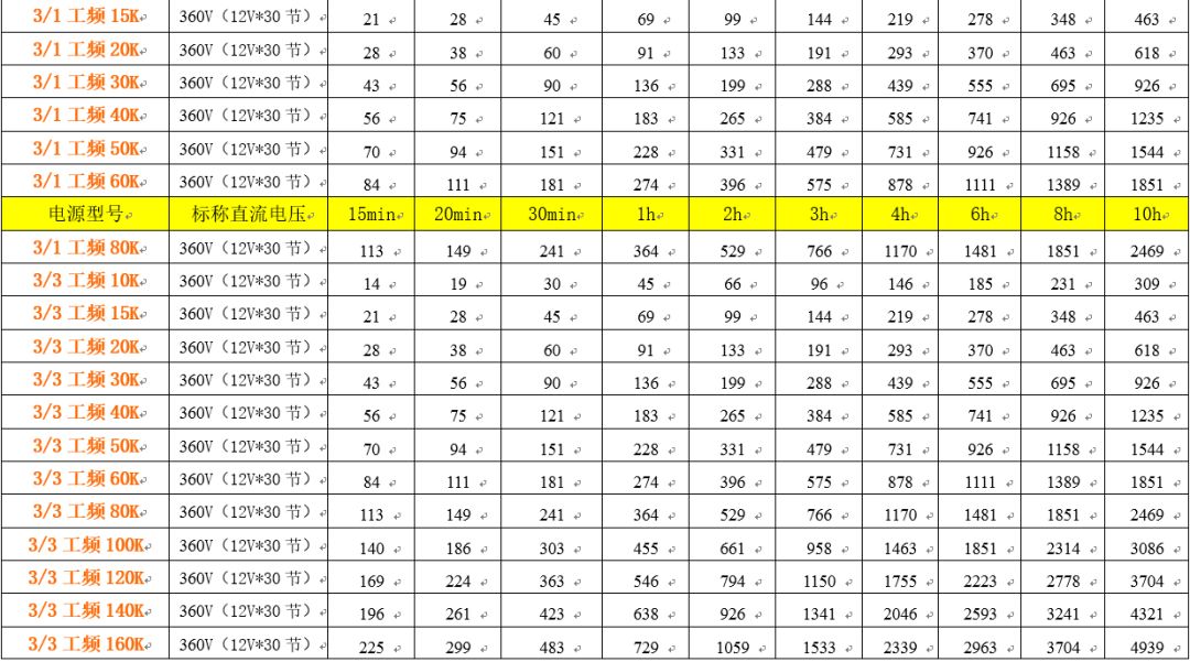以下各系列机器所配置的蓄电池容量,是按照“电流法”进行配置,仅做参考!