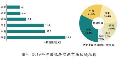 随着经济发达地区产业结构的调整和升级,能源、土地、劳动力等生产要素价格大幅度提升,另外,北京、上海、圳等地纷纷出台政策限制高能耗数据中心的建设,数据中心建设投资开始加速向环经济发达地区、中西部、北部地区转移,机房空调市场也随之向相应区域转移。2019年,中国机房空调市场继续以华东、中南、华北三大区域为主要应用市场,市场份额占整体市场的74.2%,其中,华东地区是最大市场,市场占有率达32.4%,中南其次,占整体市场21.2%,见图4。