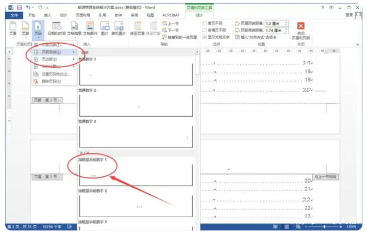 2、点击页码下拉选项,插入需要的页码样式;