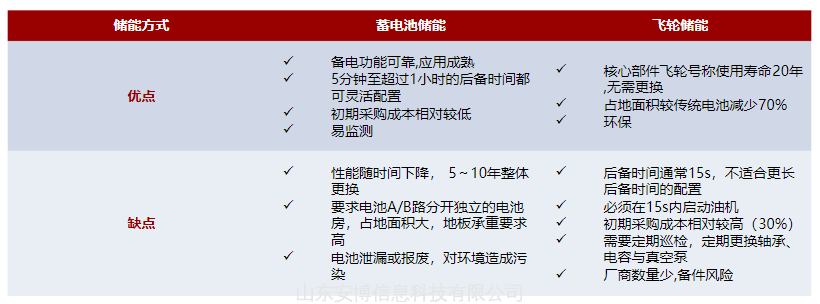 静态UPS与动态UPS最大的区别在于其储能方式,一个是电池储能,一个是飞轮储能,下表对比这两种储能方式的优劣。
