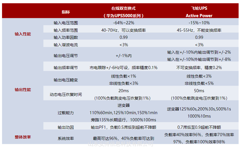 表4:在线双变换式与飞轮UPS参数对比