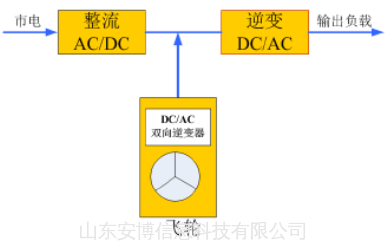 这种结构与在线双变换式UPS非常相像,区别在于,使用飞轮代替了电池进行储能,需要搭配传统UPS进行使用,因此应用比较局限。