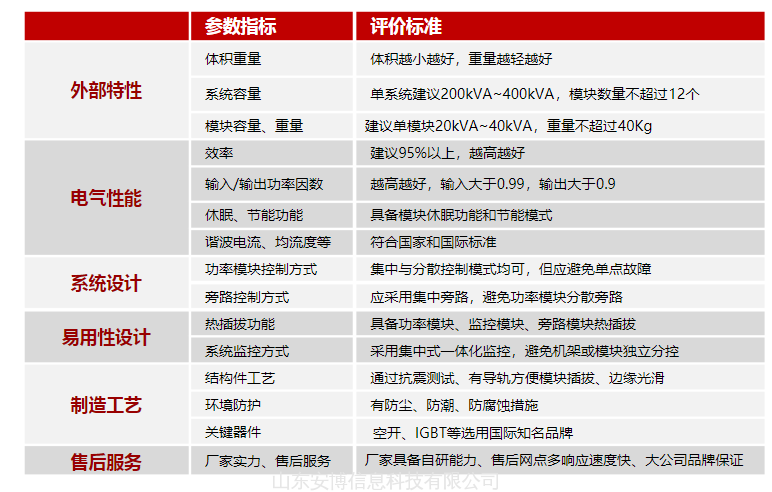 选用模块化UPS要考虑多方面的因素,用户可通过下表进行快速选择。