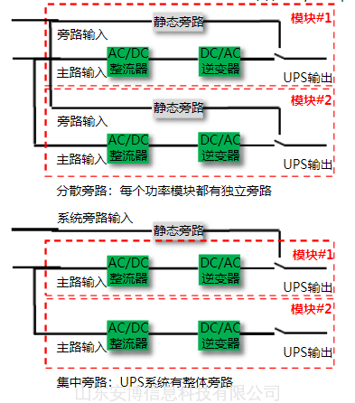 因为分散旁路控制的种种缺点,建议用户应选用系统集中旁路控制模式(系统总旁路容量是固定的,不会因为功率模块损坏而变化),并在初期规划时就考虑好系统所需要的总旁路容量。